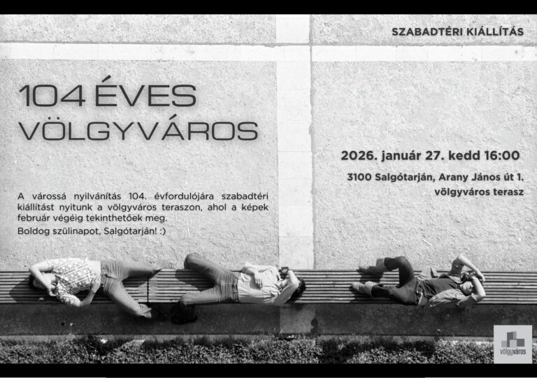 Salgótarján várossá nyilvánításának 104. évfordulója alkalmából különleges szabadtéri kiállítás nyílik január 27-én, kedden 16 órakor a völgyváros teraszán. 104 év – 104 régi fénykép a város történetéből. Salgótarján 104. születésnapjához kapcsolódóan szabadtéri tárlatot csodálhatnak majd meg az érdeklődők. A kiállítást a Völgyváros Egyesület valósítja meg, amely egészen február végéig látogatható lesz. Minderről a völgyváros Facebook-oldalán számoltak be.