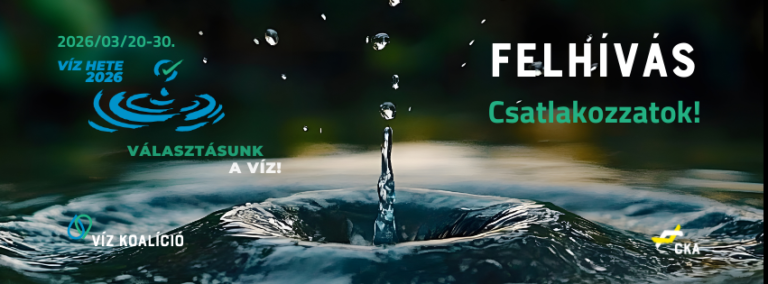 Víz Hete – 2026.03.20-30. A Víz Koalíció a hazai víziközmű szolgáltatás, vízbázisvédelem fenntarthatóságának, vízszegénység és szennyvízkezelés témakörében a Víz Világnapja köré idén ötödik alkalommal szervezi meg a Víz Hete országos programsorozatot.Célunk a problémák felszínre hozása és a megoldási javaslatok célba juttatása mellett az is, hogy megismertessük a víz fontosságát, azt a nélkülözhetetlen értéket, mely mindennapi életünk része, hiszen víz nélkül nincs élet!