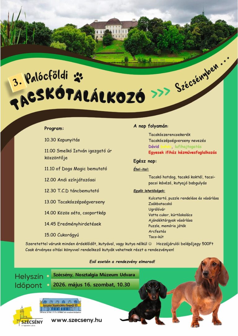 Figyelem, gazdik és kutyabarátok! Idén május 16-án, szombaton újra a tacskóké lesz a főszerep Szécsény belvárosában. A Boldogabb Gyermekkor Egyesület immár harmadik alkalommal rendezi meg a Palócföldi Tacskótalálkozót a Nosztalgia Múzeum udvarán.