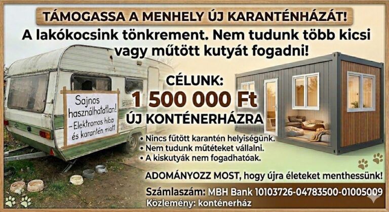A szükséges összeg töredéke gyűlt össze, így továbbra sem tudnak kölyköket és sérült kutyákat fogadni az állatvédők. A salgótarjáni menhelyen nagy a baj, hetek óta új konténerházra gyűjtenek, mivel az eddig karanténként működő lakókocsi használhatatlanná vált. Minden forintot szívesen fogadnak.