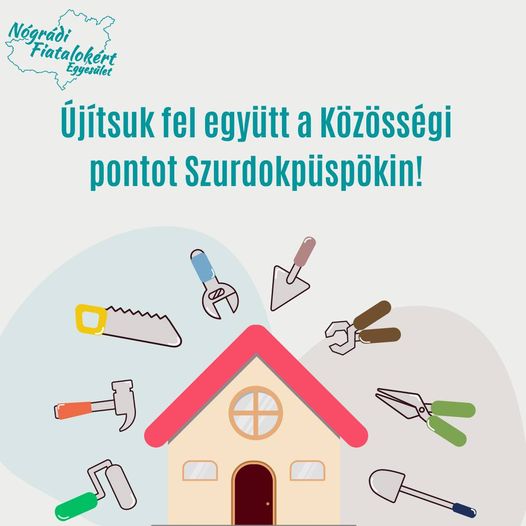 A Nógrádi Fiatalokért Egyesület Szurdokpüspökiben közösségi pontot hoz létre. Egy nagyobb termet újítanak fel az Ifjúsági házban a fiatalok számára. Már folynak a munkálatok, azonban az újabb feladatokhoz önkéntesek segítségét várják július 1-jén, szombaton és július 2-án, vasárnap 9 órától takarítás, pakolás, favágás, kertrendezés és egyéb feladatokra elvégzésére.