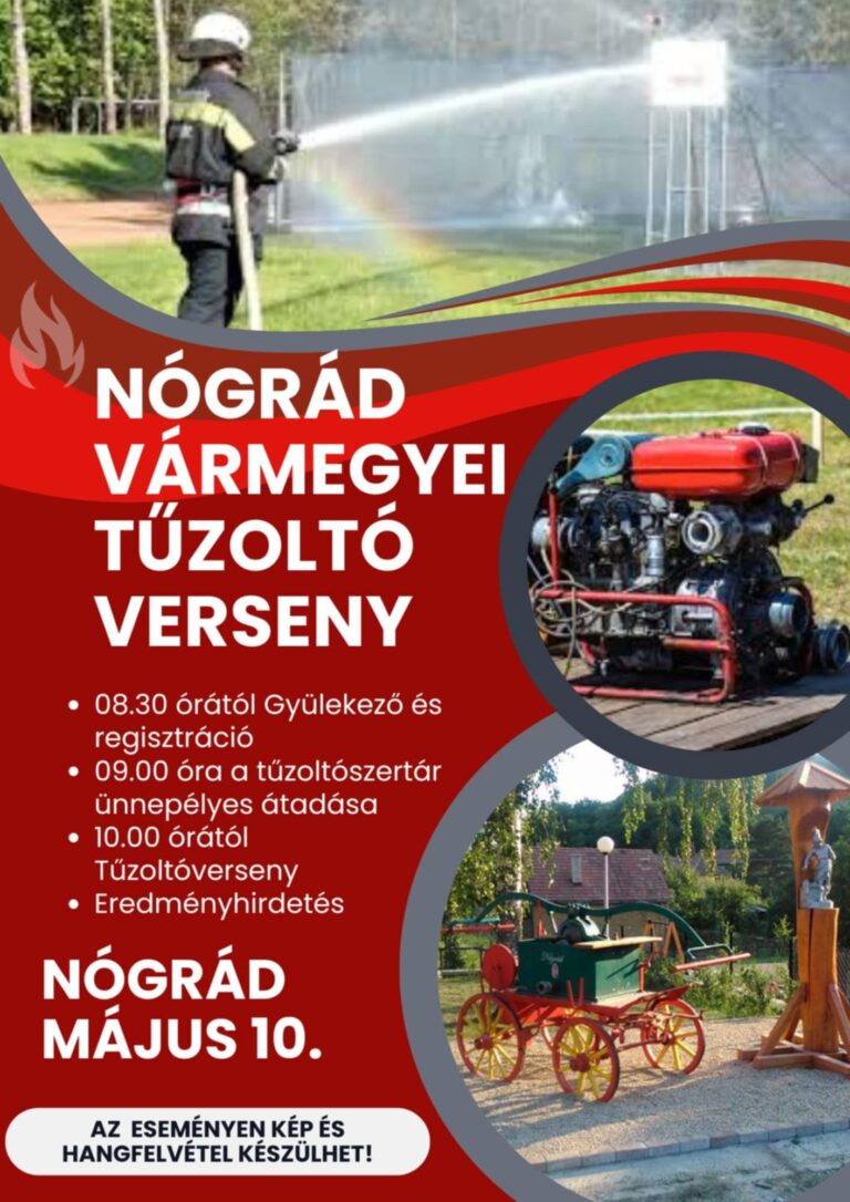 Tűzoltók lepik majd el Nógrád községet május 10-én, szombaton reggel. Aggodalomra azonban semmi ok, a település sportpályáján ünnepelni és versenyezni gyűlnek össze a lánglovagok. A Nógrád Község Önkormányzata, a Nógrád Vármegyei Katasztrófavédelmi Igazgatóság és a Nógrádi Önkéntes Tűzoltó Egyesület által közösen szervezett Szent Flórián napi ünnepség 9 órakor kezdődik a falu tűzoltószertárának ünnepélyes átadójával. Egy órával később kezdődik az önkéntes és létesítményi tűzoltók versenyre.