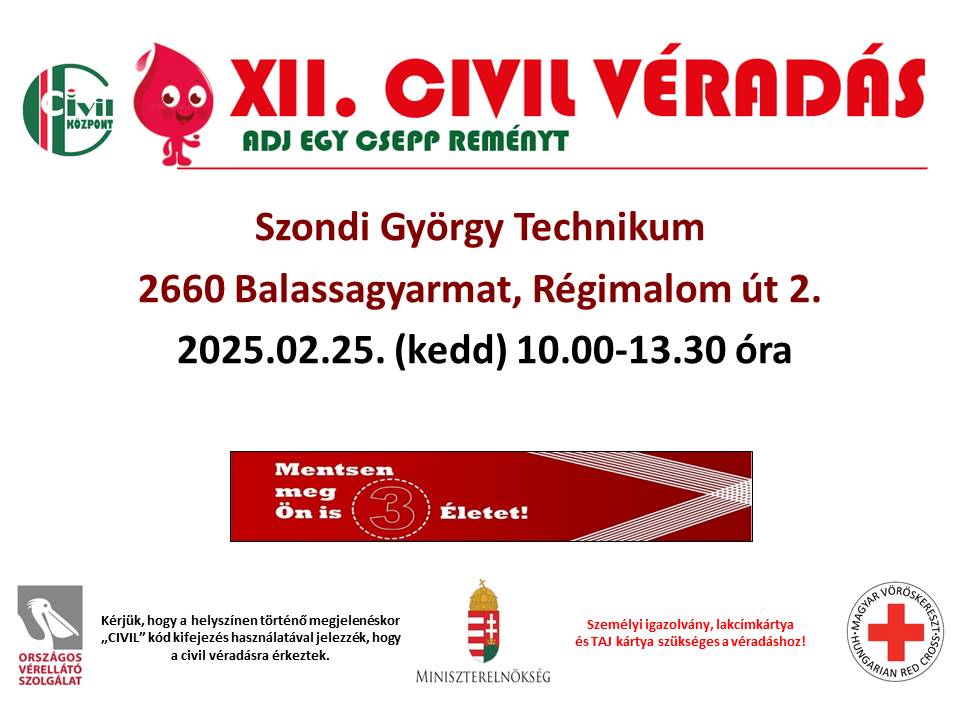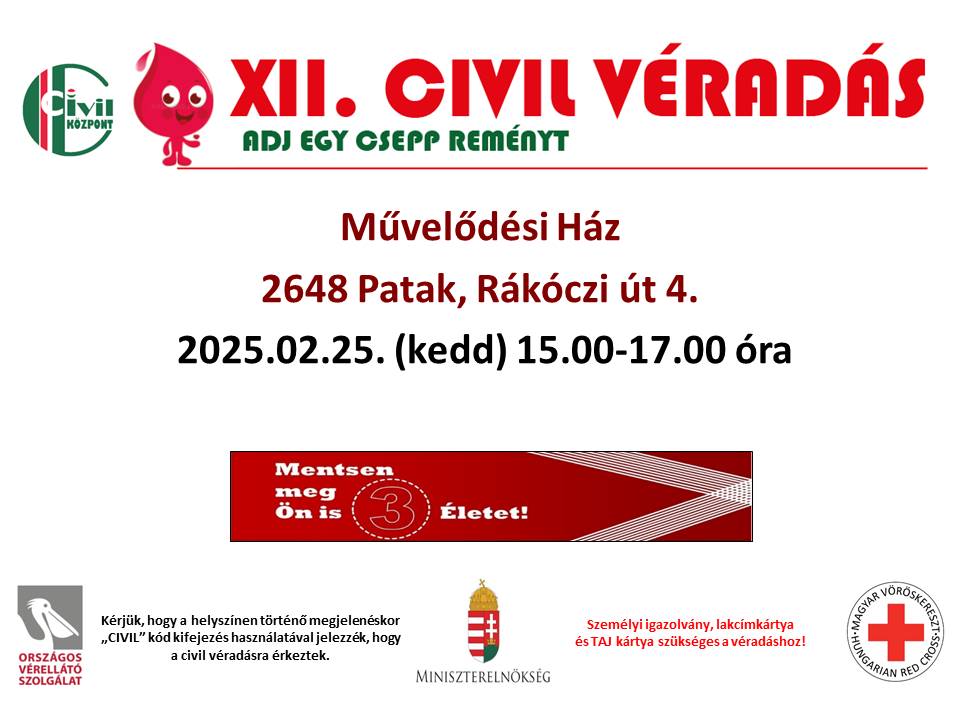 Ma is folytatódik a Civil Véradás! Balassagyarmaton és Patakon várjuk a véradókat!
