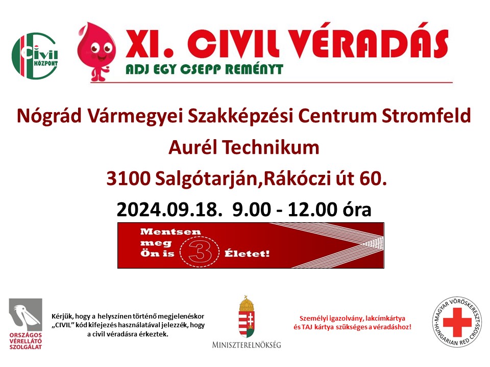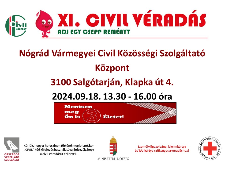 Szerdán Salgótarjánban két időpontban és két helyszínen várjuk a véradókat.