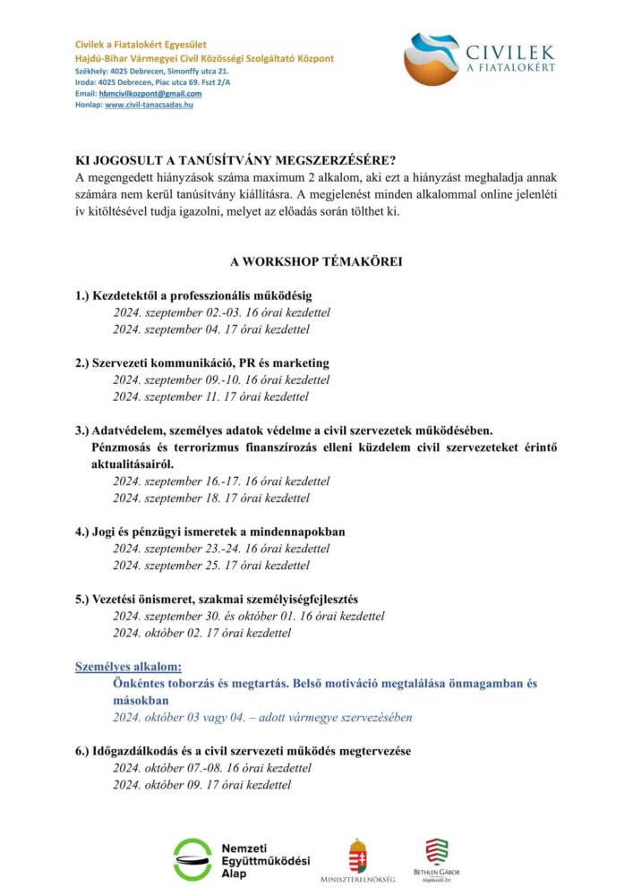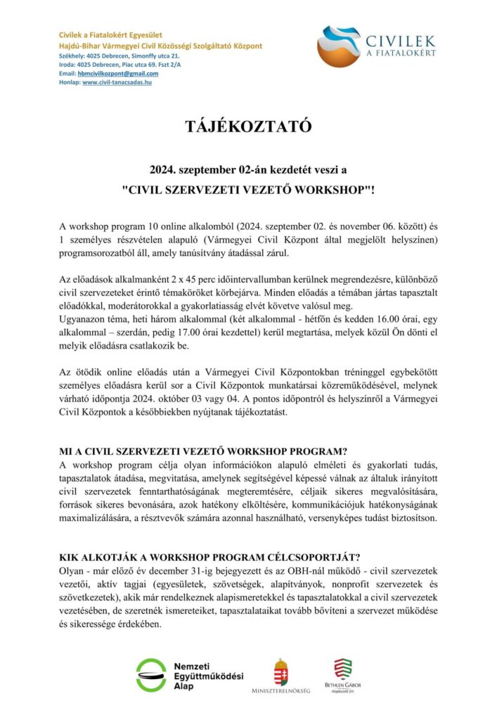 Szeptembertől újra indul az országos civil szervezeti vezetőképző workshop