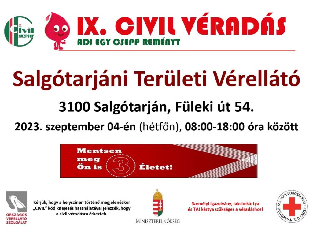 – 2023. szeptember 4. 8.00-18.00 óra – Salgótarján, Salgótarjáni Területi Vérellátó