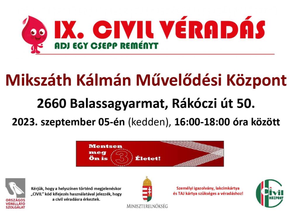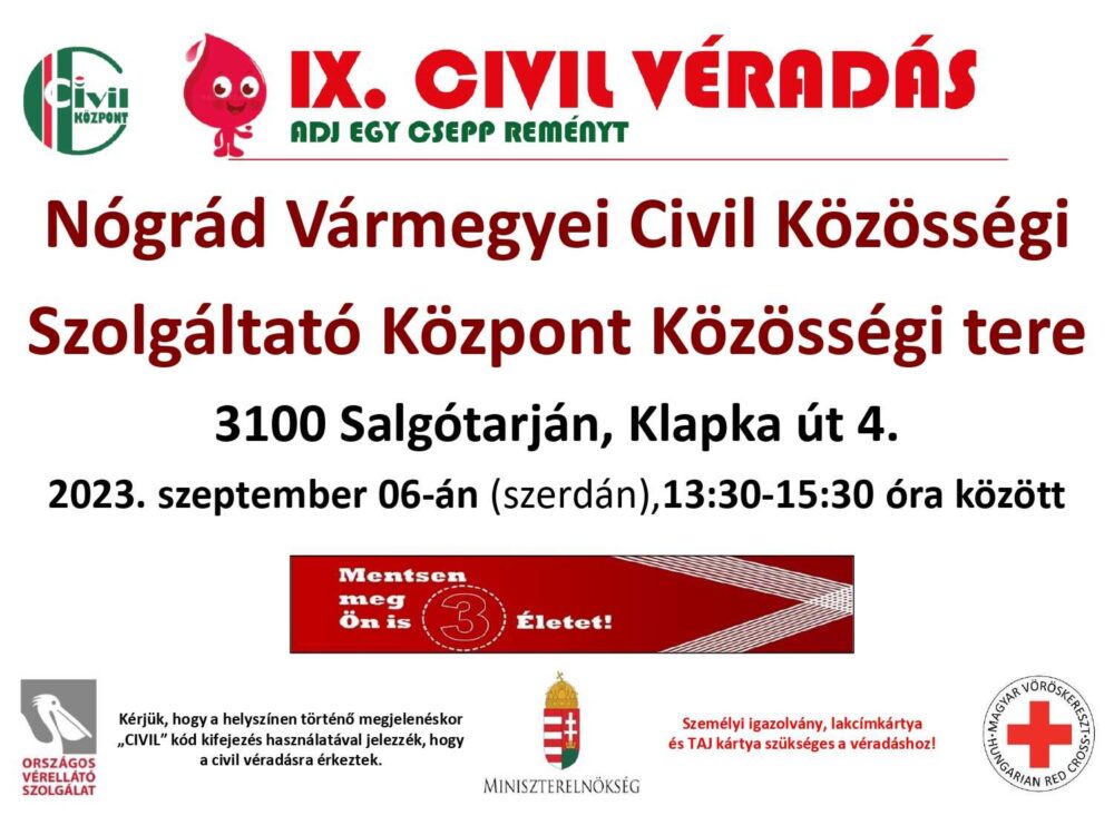 – 2023. szeptember 4. 8.00-18.00 óra – Salgótarján, Salgótarjáni Területi Vérellátó