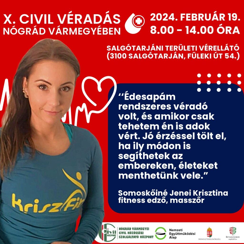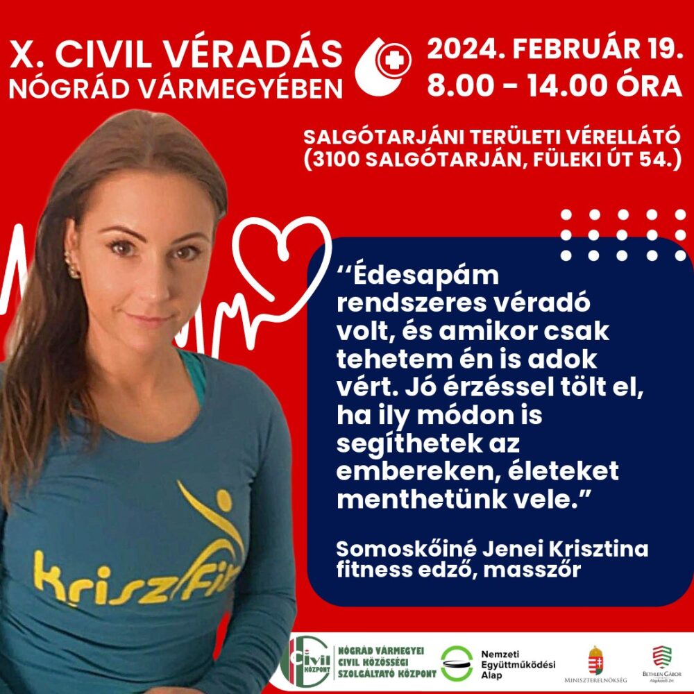 2024. február 19-én 8.00 órától 14.00 óráig várjuk a véradókat Salgótarjánban a Területi Vérellátóban.