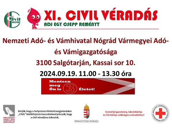 Ma is folytatódik a Civil Véradás, két helyszínen is várjuk a véradókat. Akinek ezek nem megfelelő időpontok, holnap is lesz lehetőség csatlakozni. Adj vért, ments meg három életet!