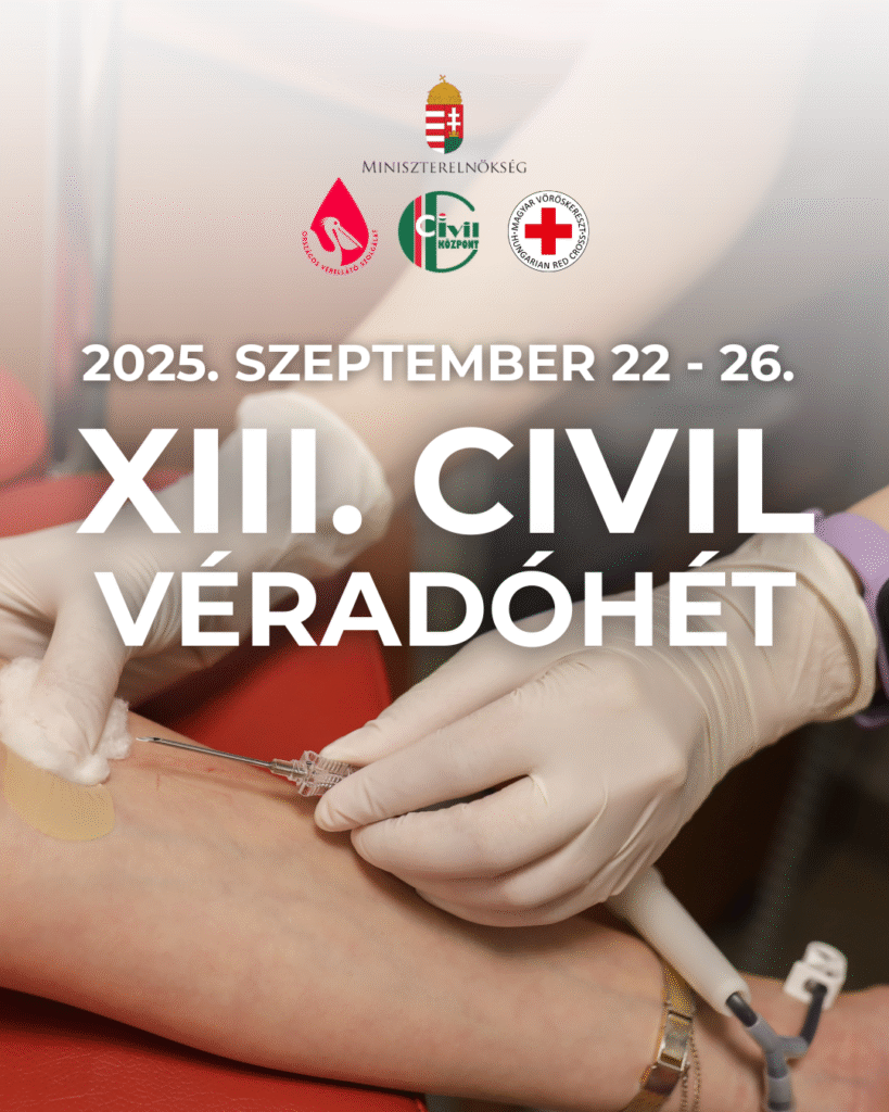 Szeptember 22-én kezdetét veszi a XIII. Civil Véradóhét, amely során a civil közösségek, állami szervezetek és humanitárius partnerek összefogásával várjuk véradásra az önkéntes segítőket az ország számos pontján.