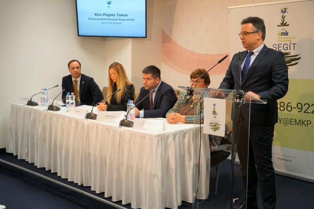 Kiss-Pogány Tamás, az Élelmiszermentő Központ Nonprofit Kft. ügyvezetője beszédében felidézte: az ÉKM 2022-ben kezdte meg működését, feladata az élelmiszerveszteség megelőzése és a lejárathoz közeli, de még biztonsággal fogyasztható, tartós élelmiszerek összegyűjtése és elosztása karitatív szervezetnek. Hangsúlyozta: az ÉKM első adventi jótékonysági akciója során az áruházláncok mellett felvették a kapcsolatot az élelmiszergyártókkal és kereskedőkkel is és várják a tartós élelmiszerek felajánlását.
