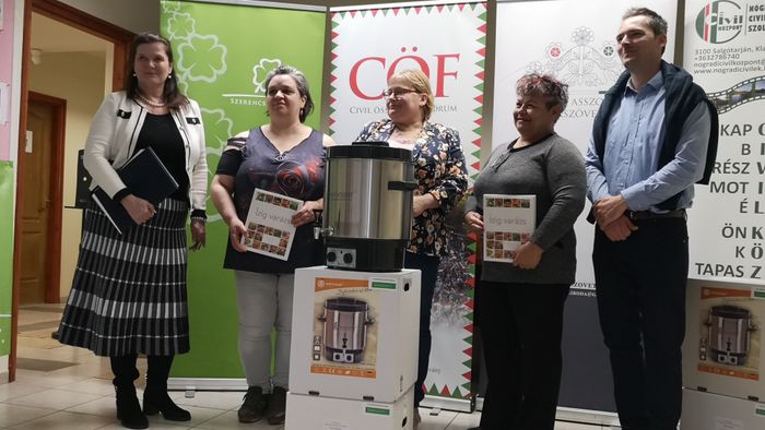 Két Nógrád vármegyei civil egyesület vehetett át adományt szerdán a Civil Összefogás Fórum és a Magyar Asszonyok Érdekszövetsége jóvoltából a Nógrád Vármegyei Civil Közösségi Szolgáltató Központban. A befőzőautomatával a szervezetek befőtteket, lekvárokat, vagy akár forró teát készíthetnek, amely tevékenység közösségépítő programként is szerepet játszhat az egyesületek életében.