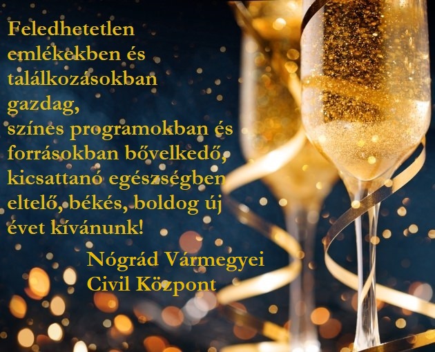 Feledhetetlen emlékekben és gyümölcsöző találkozásokban gazdag, színes programokban és sokoldalú forrásokban bővelkedő, csodás élményekkel színezett és kicsattanó egészségben eltelő, békés, boldog új évet kíván minden kedves partnerének a Nógrád Vármegyei Civil Közösségi Szolgáltató Központ stábja!