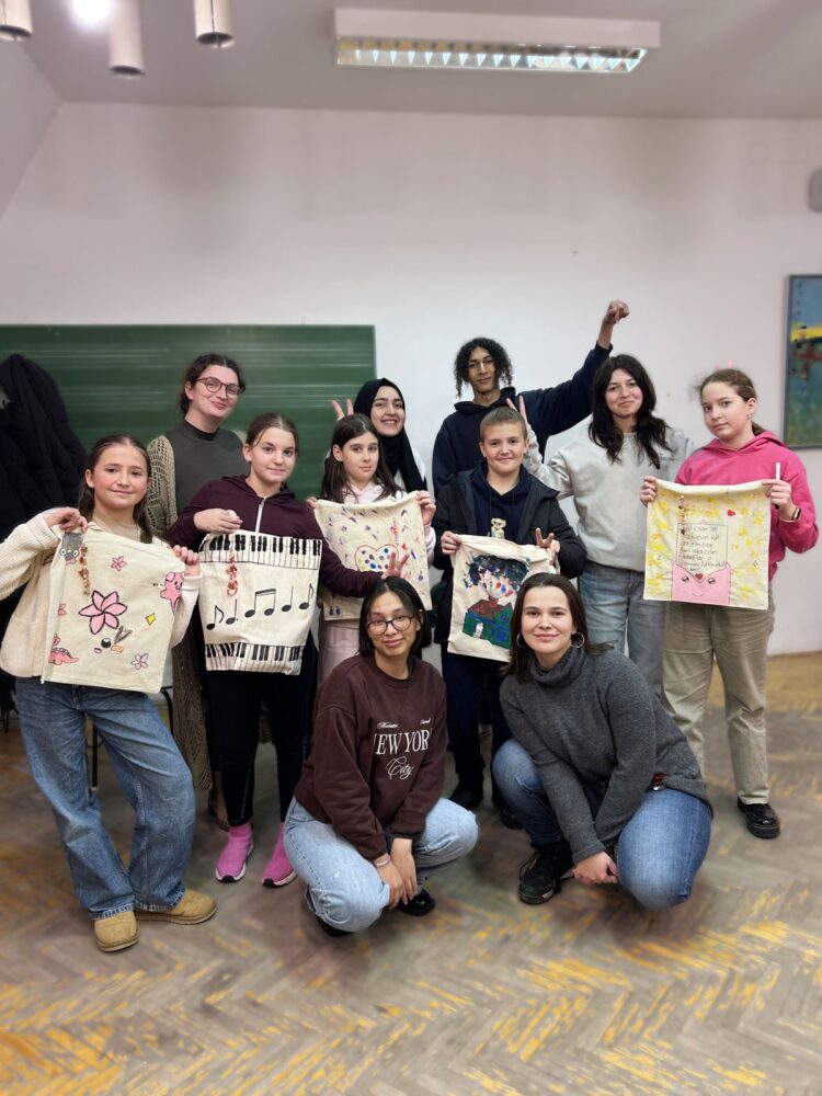 Mint az Becsey Janka elmondta, ezután a találkozó a Szécsényi Városi Művelődési Központban folytatódott. Itt a szervezet négy önkéntesének a vezetésével játékos, angol nyelvű foglalkozáson vettek részt a gyermekek, majd a nap további része Sanatombi Shorokhaibam önkéntes szervezésében táskafestéssel telt. A kreatív délután végén minden gyermek büszkén mutatta meg saját kezűleg elkészített, egyedi mintákkal díszített táskáját.