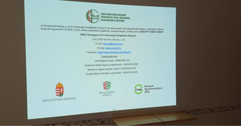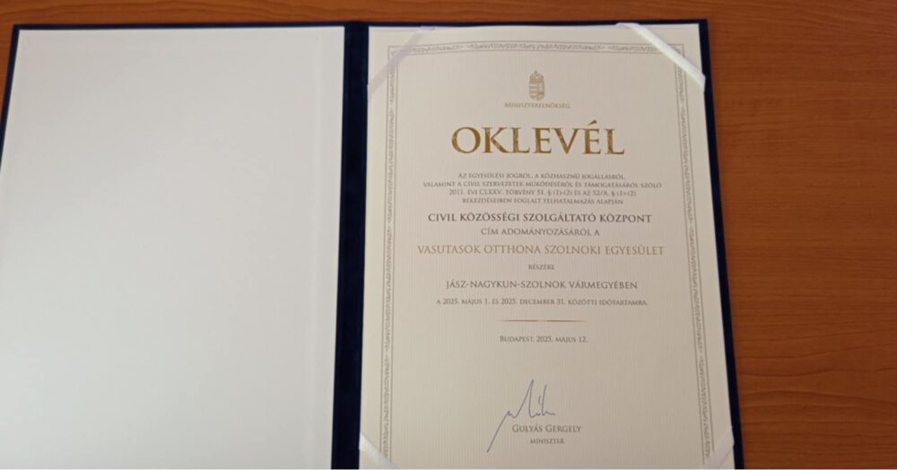 A Miniszterelnökség a “Civil Közösségi Szolgáltató Központ” cím elnyerésére kiírt pályázati felhívására a VOSZE 2025. évben pályázatot nyújtott be és elnyerte a Civil Közösségi Szolgáltató Központ címbirtokos címet Jász–Nagykun-Szolnok vármegyében!