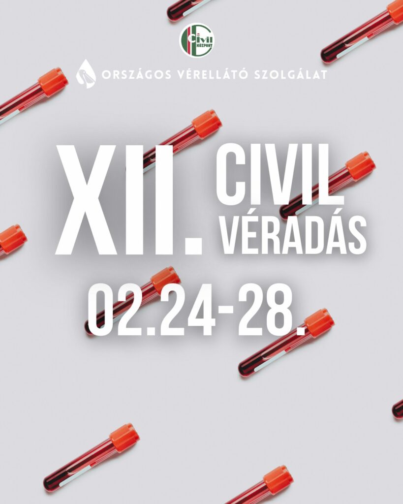 Immáron 12. alkalommal várja a véradókat az országos Civil Véradási Hét február 24-28. között.