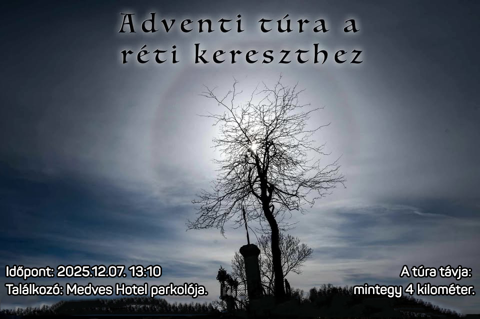 A Hajrá, Salgótarján! Egyesület idén is megrendezi hagyományos adventi túráját a Medves-fennsíkon álló Réti kereszthez. Az esemény közösségi oldalán megosztott tájékoztatása szerint, közel négy kilométeres gyalogos túra indul advent második vasárnapján, december 7-én, 13 óra 10 perckor a Medves Hotel előtti parkolótól. A résztvevők egy könnyű séta során érik el a Réti keresztet, majd onnan közösen visszatérnek Salgóbányára, ahol felkeresik a közelmúltban felújított Szent István-kápolnát. Varga András esperesplébános jóvoltából liturgikus élményekkel gazdagodhatnak a túrázók mielőtt felgyullad az adventi koszorú második gyertyája. A kápolnában az egyesület mézeskaláccsal és forró teával vendégeli meg a résztvevőket.