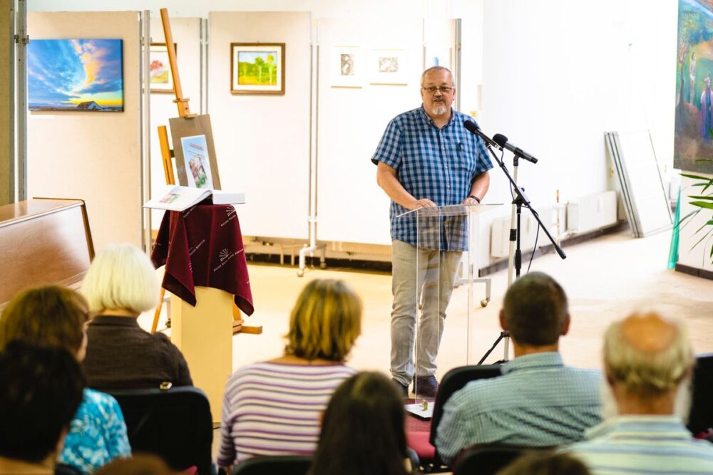 Mindig figyelemre érdemes a bemutatókat megnyitó személy is, mert nemcsak hozzáértő, de a társasághoz kötődő szakembereket kérnek fel erre a szerepre. A jelenlegi tárlatot dr. Paróczai Csaba Gergely nyitotta meg, aki maga is tollforgató, számtalan vers és prózai művön, köteten olvasható a neve, s nem utolsósorban ő maga is baráti kapcsolatokat ápol nem egy kiállítóval. Nevezett a bevezető gondolatai sorában hangsúlyozta az őszi kiállítások jelentőségét.