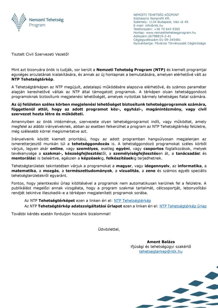 Az NTP Tehetségtérképet ezen a linken éri el: NTP Tehetségtérkép
