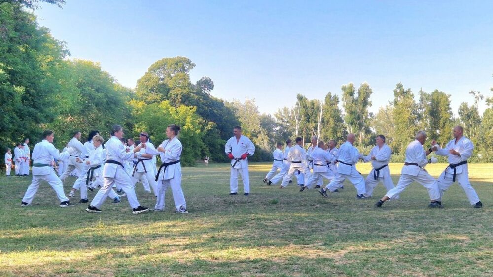 „A nagy forróságban a szabadtéri edzések komoly kihívás elé állították a keményen dolgozó sportolókat, de mindenki állta a sarat, így sikerült sérülés és napszúrás nélkül teljesíteni a tábor programját. Az edzések kiemelt témája a formagyakorlatok egységes technikai végrehajtása, valamint az övvizsgára való felkészítés volt” – olvasható a bejegyzésben.