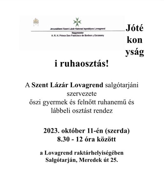 A salgótarjáni Szent Lázár Lovagrend az ősz folyamán sem feledkezik meg a hátrányos helyzetű, nehéz sorsú családokról és az egyedülálló emberekről.