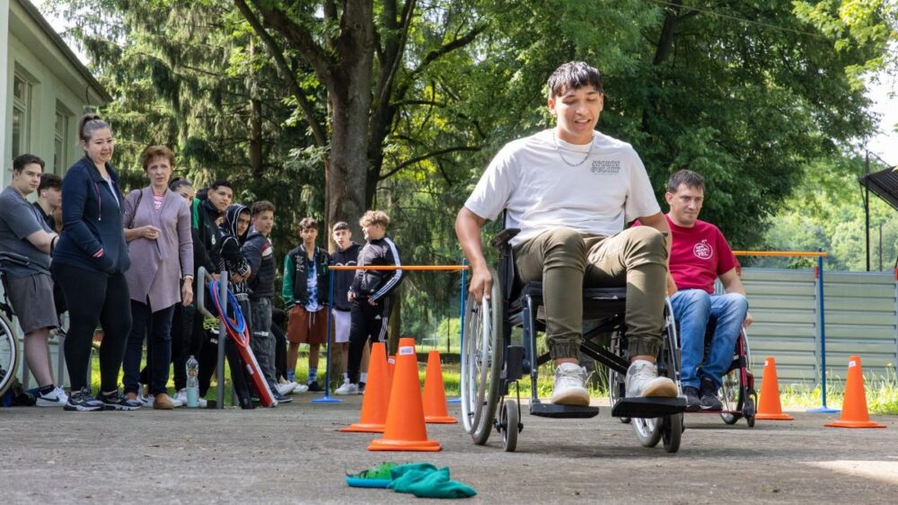 Kerekesszékes akadályverseny is szerepelt a feladatok között