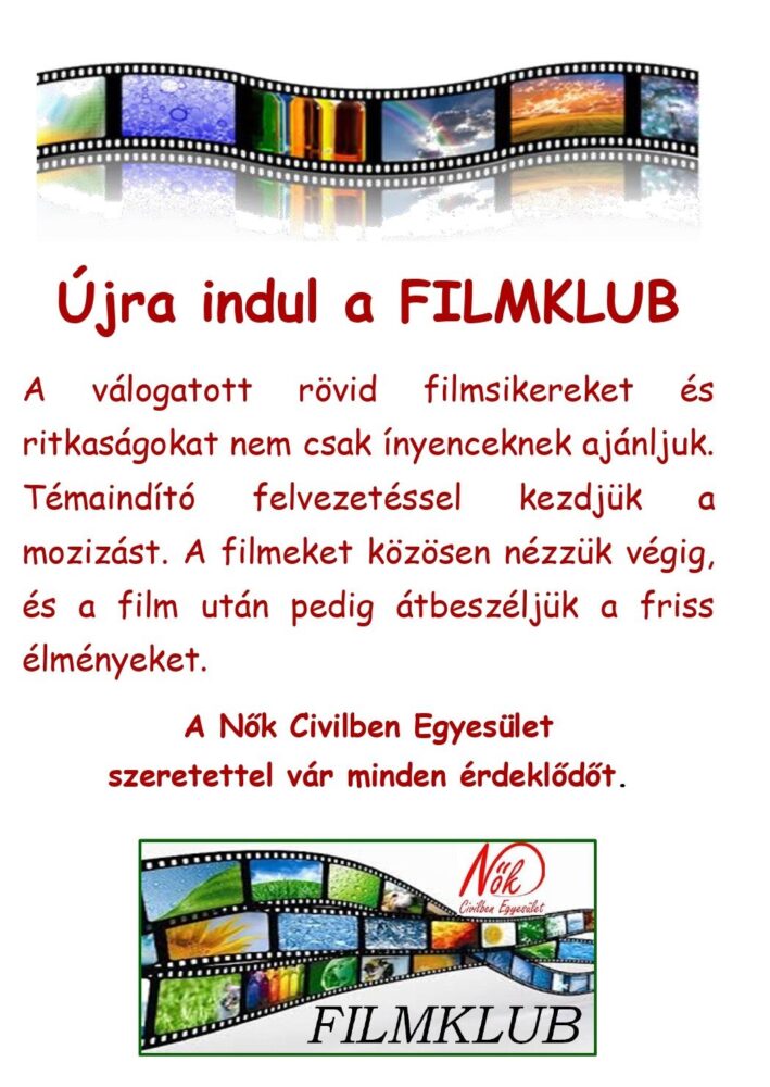 Újra indul a filmklub szeptembertől a településen a Nők Civilben Egyesület szervezésében – közölte a szervezet közösségi oldalán. Mint arról beszámoltak, válogatott filmsikereket és különféle ritka alkotásokat vetítenek majd. A tervek szerint témaindító felvezetéssel kezdik a mozizást, amelyeket mindig megbeszélnek a résztvevőkkel.