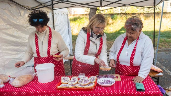 A jó hangulatú programon az Ezerszín, Ezernyi Szív Egyesület tagjai lángossal és teával kínálták a résztvevőket. Danyi Erika, az egyesület elnöke portálunknak elmondta, hogy nagy örömmel tesznek eleget minden felkérésnek, és szívesen főznek a társszervezetek programjain. Emellett az adománygyűjtésből és azok szétosztásából is kiveszik részüket. A szervezet soraiban sok a fiatal, és bárhol fordulnak meg, mindig szívesen segítik munkájukat a fiatal önkéntesek. Ez talán annak köszönhető, hogy a csapat tagjai szívesen töltik együtt idejüket, mindig jó hangulatban végzik a dolgukat. A hozzájuk csatlakozó fiataloknak is mindig adnak feladatot, így érzik, hogy munkájukkal ők is a jó ügyet segítik.