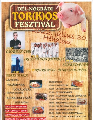 Torkos fesztivált tartanak Héhalomban július 30-án, szombaton, 12 órától.