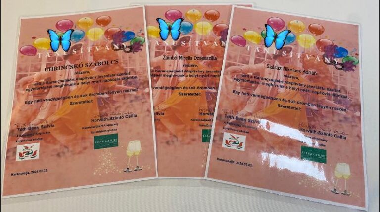 Tanúsítványt vehetett át szombaton Karancsalján három helyi, hátrányos helyzetű gyermek, akiknek egy heti táborozásban lesz része a nyár folyamán. Tóth-Beeri Szilvia, A Szövetség Alapítvány elnöke és Horváth-Szántó Csilla, a Karancsaljáért Alapítvány kuratóriumának elnöke adta át a kiválasztott fiataloknak, Uhrincskó Szabolcsnak, Zámbó Mirella Dzsesszikának és Száraz Nikolasz Adriánnak az oklevelet.