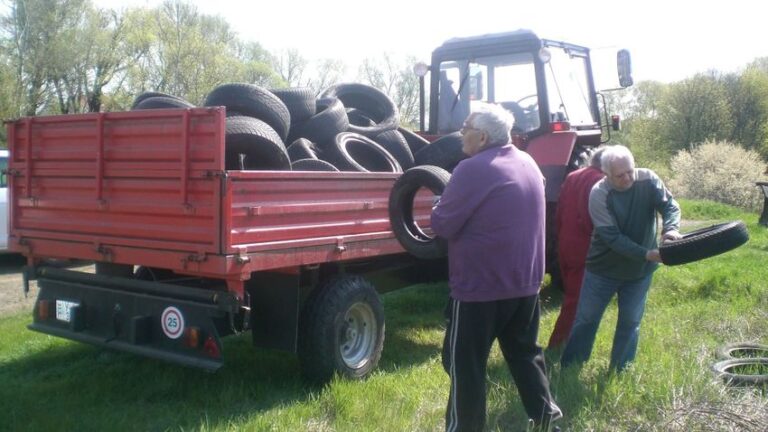 Polgárőrök szedték össze a rétsági Hunyadi-ligetben szétszórt gumiabroncsokat