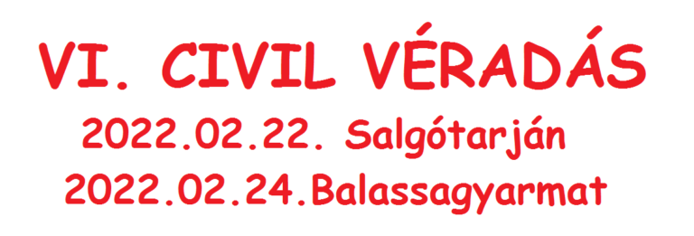 A Nógrád Megyei Civil Központ februárban rendezi meg a VI. Civil Véradást. Nógrád megyében két helyszínen is ajándékokkal várjuk a véradókat. Legyél hős, ments meg 3 életet! Február 22. (kedd) 9.00 – 15.00 óra, Salgótarján, Nógrád Megyei Civil Központ Február 24. (csütörtök) 13.00 – 16.00 óra, Balassagyarmat, Mikszáth Kálmán Művelődési Központ.