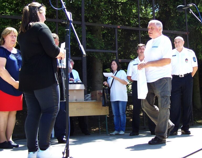 Vanyarc. Szombaton délelőtt, 2017. július 1-én egy kiadós esőzést követően, a Vanyarc központjában lévő szabadéri színpadon a rekkenő hőségben Hrncsjár Mihályné polgármester köszöntötte a járás tíz településéről érkezett polgárőrcsoportokat, a vendégeket, köztük Vass Miklóst, a Nógrád Megyei Polgárőr Szövetség elnökét, aki a megnyitó beszédében elmondta: – Több ilyen közös rendezvényünk legyen, hogy ez a csapat minél jobban összekovácsolódjon. Igaz, kis megye vagyunk az országban, de nálunk a polgárőrök létszáma igen