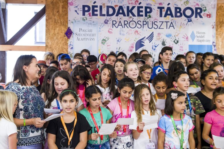 Ötödik alkalommal rendeztek a Hanns Seidel Alapítvány támogatásával Példakép tábort környékbeli, hátrányos helyzetű gyerekeknek az ipolymenti Ráróspusztán a múlt héten. A tábor vendégváró napjára, az utolsó előttire, meghívták Novák Katalint, az Emberi Erőforrások Minisztériumának (EMMI) család-, ifjúság- és nemzetközi ügyekért felelős államtitkárát is. Novák Katalin együtt énekelt a gyerekekkel MTI Fotó: Komka Péter Nógrádszakál-Ráróspuszta. Amíg az államtitkár érkezésére vártunk, Fixl Renáta, az említett alapítvány munkatársa lapunk kérdésére elmondta: a tábor