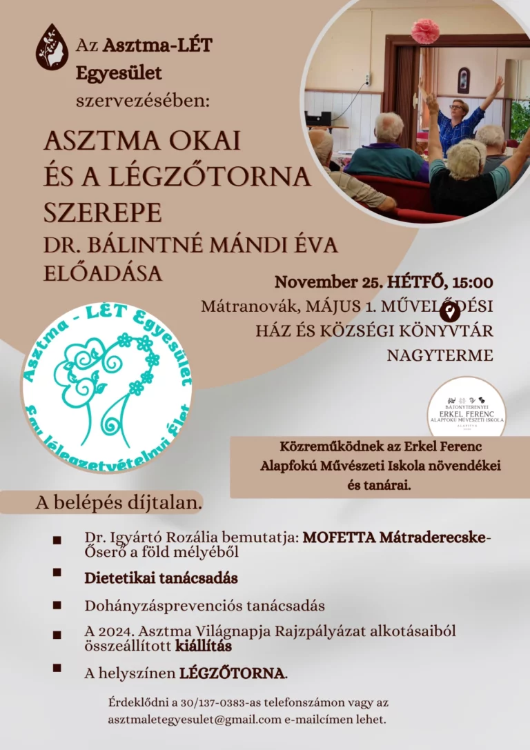 Az asztma okairól is szó lesz a mátranováki előadáson