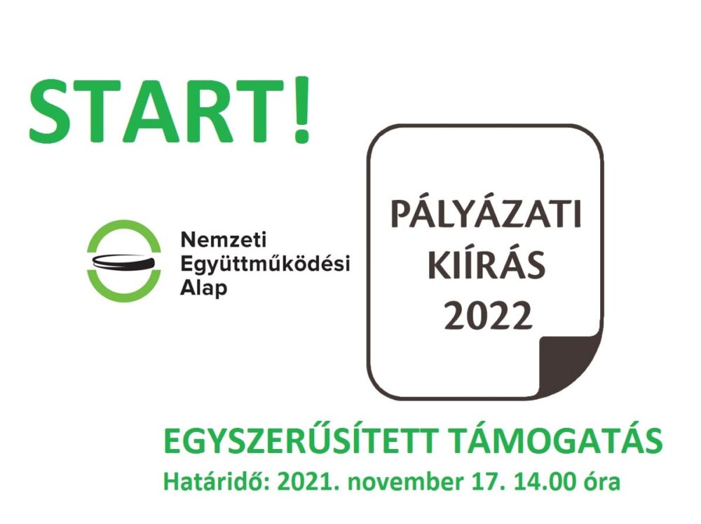A „Helyi és területi hatókörű civil szervezetek egyszerűsített támogatása 2022.” című pályázati kiírás tekintetében: 2021. október 18. 8:00 – 2021. november 17. 14:00 között.