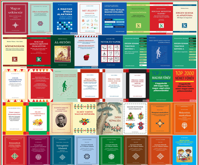 1. Magyar szókincstár 2. Jókai-enciklopédia 3. A magyar nyelv alaktana 4. Érettségi tételek magyar nyelvből 5. Mit jelent? 6. Aranyköpések 7. Hogyan mondták eleink? 8. Idegen szavak alapszótára 9. Közmondások 10. Magyar szókincsbővítő diákszótár 11. Ál-Petőfi 12. Szerezz okosságot! 13. Nevek és napok 14. Idegen szavak tematikus szótára 1. 15. Idegen szavak tematikus szótára 2. 16. Emelt szintű angol nyelvtan gyakorlatokkal 17. Angol elöljárószók kézikönyve 18. Magyar–angol nagy kollokációszótár 19. Tesztsorok angol nyelvből 20. Magyar–angol közmondászótár 21. Phrasal verbs angol–magyar szótár 22. Phrasal verbs magyar–angol szótár 23. TOP 2000 magyar főnév 24. TOP 2000 német főnév 25. Német–magyar közmondásszótár 26. Olasz gasztronómiai szótár 27. Radnóti Miklós huszonöt legszebb verse 28. Elmét vidító magyar népmesék 29. Japán népmesék 30. Magyar motívumok kifestőkönyve 31. Hangtani munkafüzet 32. Helyesírási munkafüzet 33. Közmondások munkafüzet 34. Szövegalkotási és szövegértési munkafüzet 35. Szövegértési feladatok 36. 4 anyanyelvi felmérő együtt 37. 2 anyanyelvi felmérő együtt 38. Megelőzöm a számolási zavart!