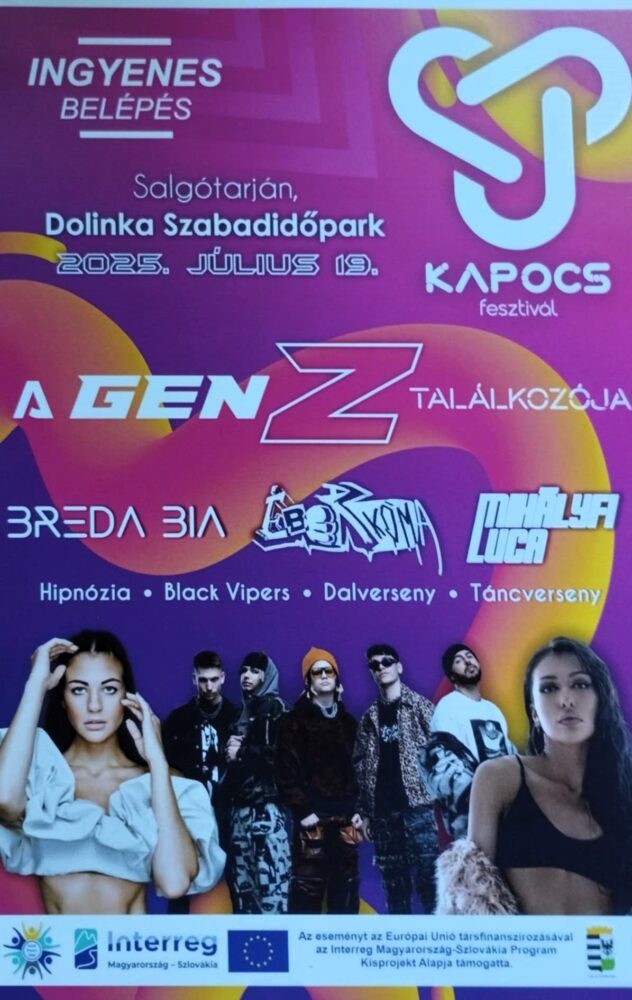 Interreg pályázat támogatásával valósul meg július 19-én és 20-án a Kapocs Fesztivál Salgótarjánban. A Dolinka Szabadidőparkban mindkét napon számos program, kikapcsolódási lehetőség és zenei műsorok várják elsősorban a z generáció tagjait, de az ingyenes rendezvény bárki számára látogatható.
