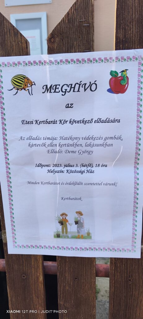 Az esemény látogatása ingyenes. Az Etesi Kertbarát Kör előadást szervez július 3-án, hétfőn, 18 órától a helyi közösségi házban. – Az érdeklődők hasznos tanácsokat kaphatnak majd a gombák és kártevők ellen a lakást és a kertet érintve egyaránt – írták a község közösségi oldalán.