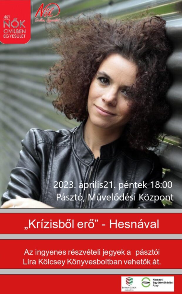 A településre látogat a salgótarjáni származású Al Ghaoui Hesna, aki több mint húsz országból, köztük a világ számos háborús övezetéből tudósított már. Ezúttal a Krízisből erő című előadását hallhatják majd az érdeklődők április 21-én, pénteken 18 órától. A rendezvény mindenki számára ingyenes, a részvételi jegyeket pedig a pásztói könyvesboltban lehet átvenni. Az előadás a Nők Civilben Egyesület szervezésében valósul meg.