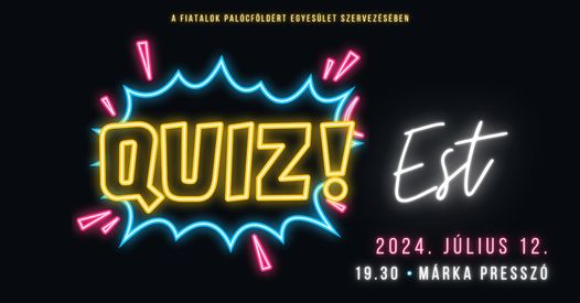 Mint írták: feleletválasztós kérdések, igaz vagy hamis feladatok, illetve zene- és filmfelismerés is akad majd a próbatételek között. A helyszínt a balassagyarmati Márka Presszó jelenti, ahol az akár csapat nélkül érkező résztvevők is 19 óra 30 perctől gyülekezhetnek, majd a kvízest 20 óra 15 perckor rajtol el az első kérdésekkel.