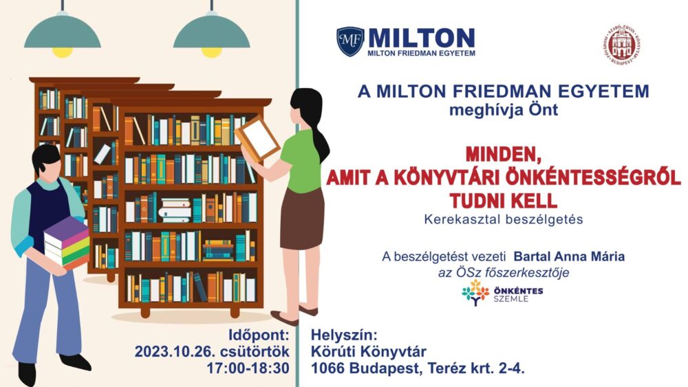 Minden, amit a könyvtári önkéntességről tudni kell címmel kerekasztal beszélgetést szervez.