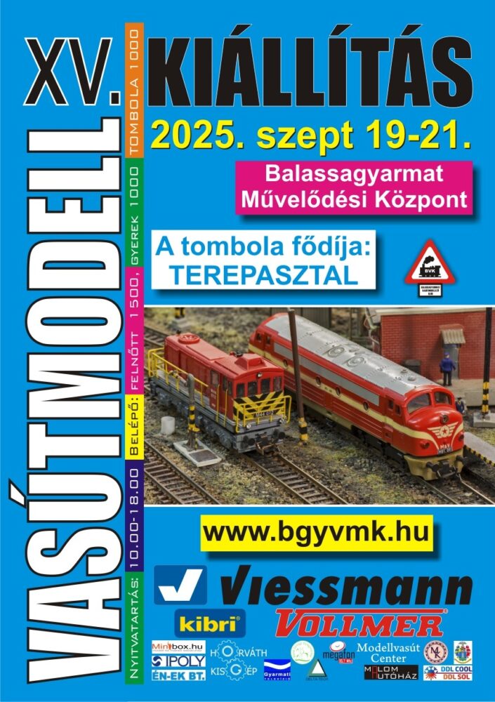 A Balassagyarmati Vasútmodellező Klub immár 15. alkalommal rendezi meg a nemzetközi vasútmodell-kiállítást szeptember 19. és 21. között a Mikszáth Kálmán Művelődési Központban. A Balassagyarmati Vasútmodellező Klub a honlapján adta hírül, hogy ezen a hétvégén tartandó nemzetközi vasútmodell-kiállításon 22 kiállító vesz majd részt. A tombola fődíja pedig ezúttal is egy H0 méretarányú terepasztal lesz. A kiállítást pénteken 9 és 18 óra között, míg szombaton, illetve vasárnap 10-től 18 óráig tekinthetik meg az érdeklődők a Mikszáth Kálmán Művelődési Központban.