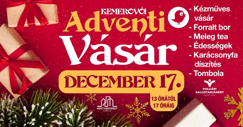Első alkalommal szerveznek Salgótarjánban, a Kemerovó-lakótelepen adventi vásárt december 17-én, vasárnap. Az esemény Facebook oldalán olvasható tájékoztatás szerint, advent harmadik vasárnapján, a Fáy András körúton található Tajga Söröző, Bacsaszelet Ételbár és az Éden Vegyesbolt előtti területen a szervezők a kirakodó-vásár mellett ingyenes gyermekprogramokkal készülnek az érdeklődőknek. A tervezett programok között szerepel továbbá egy karácsonyfa felállítása, amelyre minden látogató vihet egy-egy saját díszt annak érdekében, hogy ezzel is egyedivé varázsolják az ünnepet. A napot 16 órakor kezdődő tombolahúzás is színesíti.