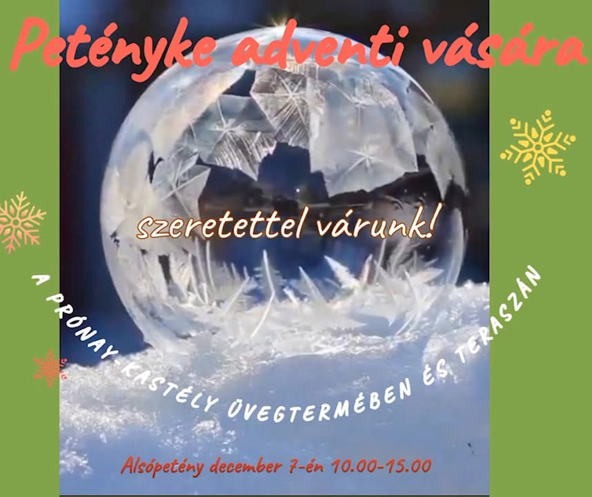Kézműves kincsekkel, finom illatokkal és ünnepi fényekkel telik meg a Prónay-kastély Alsópetényben december 7-én, vasárnap 10 és 15 óra között. Idén adventkor újra megtelik a kastély rendezvénytere vidám nyüzsgéssel. Ahogy az az esemény Facebook-oldalán is olvasható, a Petényke Egyesülettel közös szervezésben megvalósuló adventi vásáron helyi kézművesek, alkotók, illetve termelők portékáiból válogathatnak majd az érdeklődők, miközben a forralt bor, a sült gesztenye és a karácsonyi dallamok gondoskodnak a meghitt hangulatról.